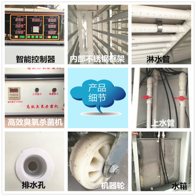 1)機器使用不銹鋼、鋁合金框架,箱體為保溫、防水、防銹的復合彩鋼板,設計合理。全新升級改進的水箱為不銹鋼或PVC塑板制作而成,使用壽命長且具有節(jié)水、低電耗等特點。